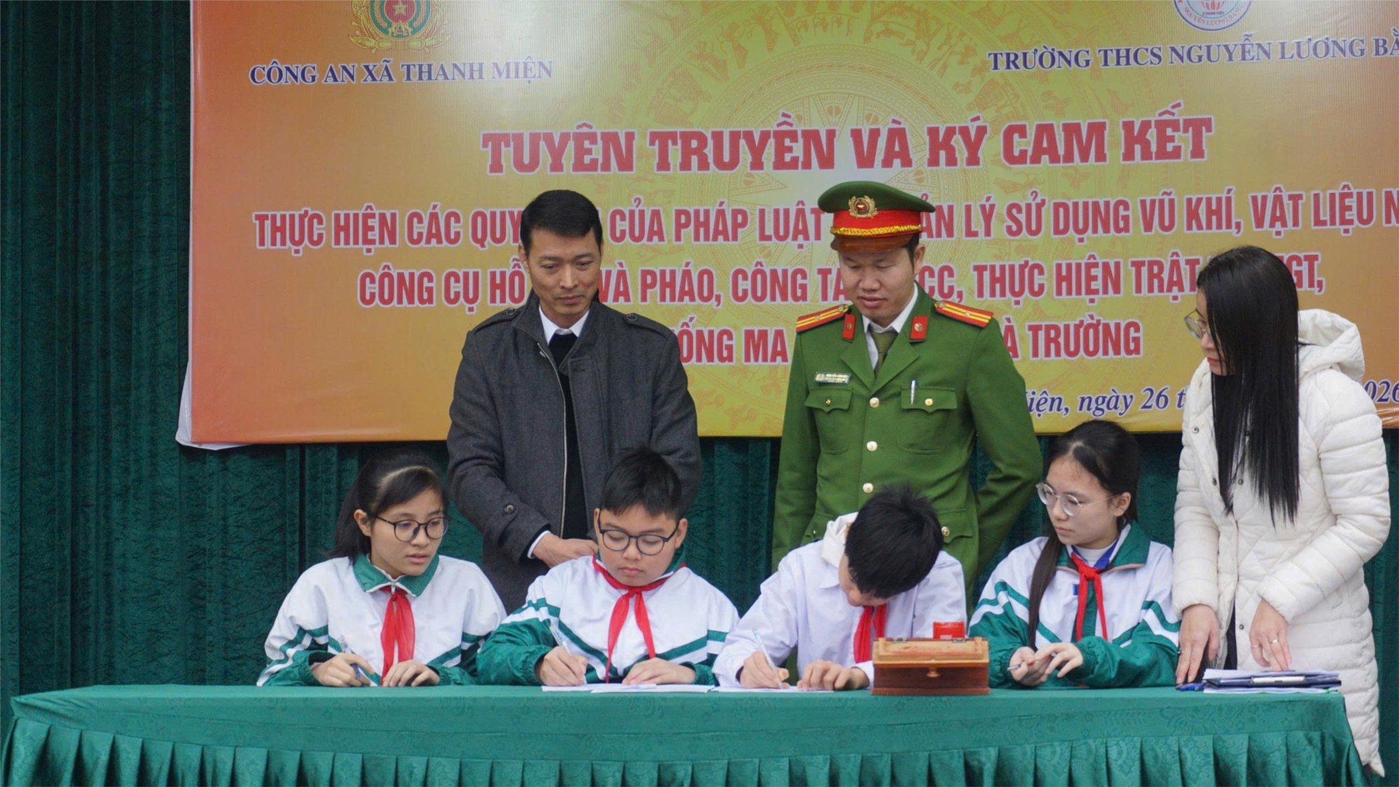 🕗 Sáng ngày 26/01/2026, Trường THCS Nguyễn Lương Bằng đã phối hợp với Công an xã Thanh Miện tổ chức buổi tuyên truyền, phổ biến pháp luật và ký cam kết thực hiện các quy định của pháp luật về:
