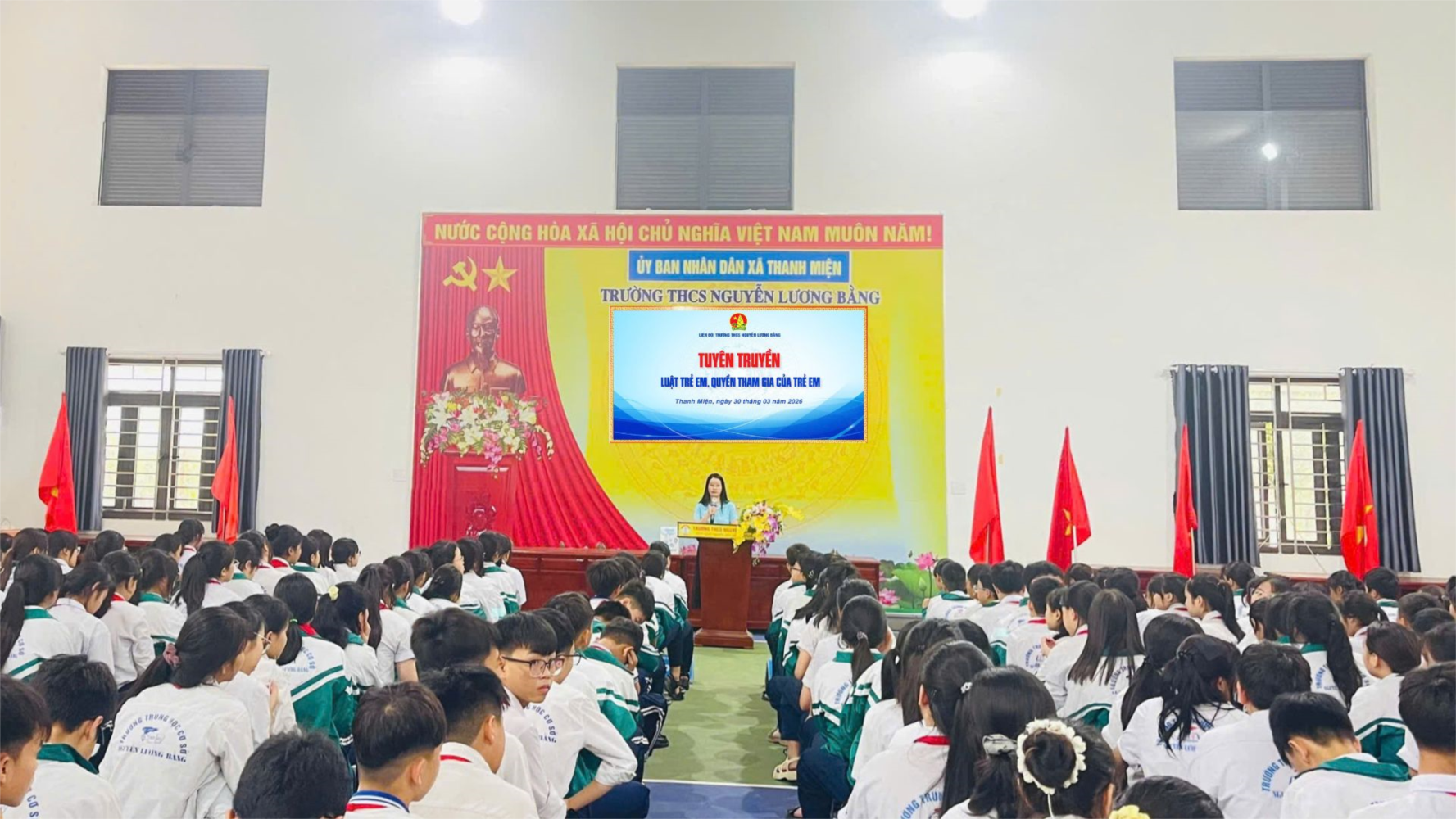 Sáng nay, ngày 30/3/2026, Liên Đội trường THCS Nguyễn Lương Bằng đã tổ chức buổi tuyên truyền về Luật Trẻ em và quyền tham gia của trẻ em dành cho toàn thể học sinh trong trường.