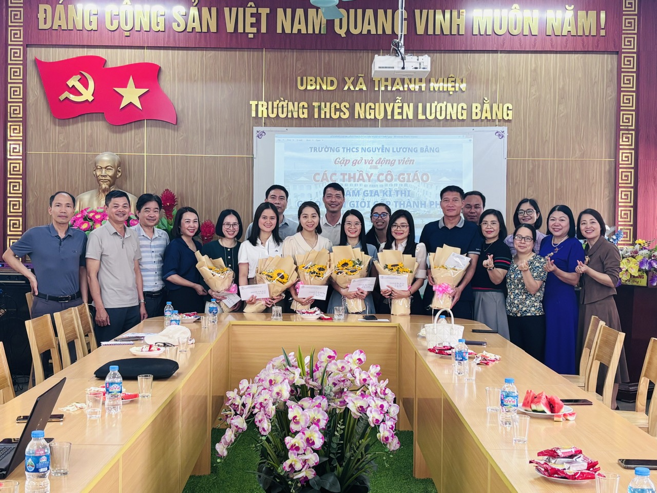 Sáng ngày 25/3/2026, trong không khí đầy hứng khởi của những ngày cuối tháng Ba, Trường THCS Nguyễn Lương Bằng đã tổ chức buổi gặp gỡ, động viên 7 thầy cô giáo tham gia Hội thi Giáo viên dạy giỏi cấp thành phố Hải Phòng.